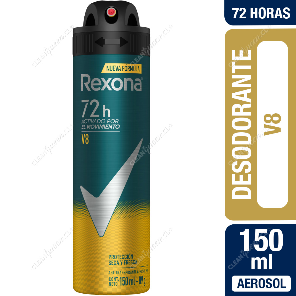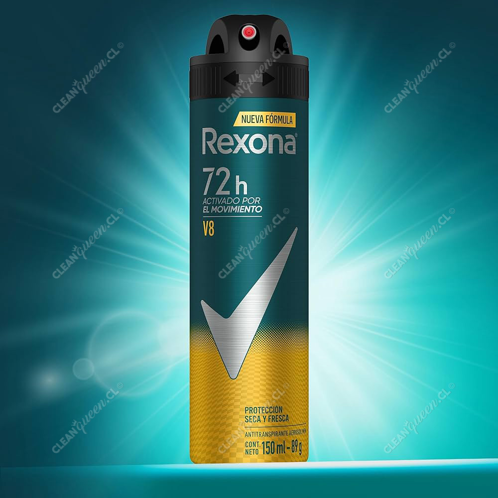 ¡Nuevo REXONA con 72 horas de protección contra la transpiración y el mal olor! El nuevo desodorante antitranspirante Rexona Hombre V8 en aerosol responde directamente al movimiento, manteniéndote seco, fresco y protegido como nunca antes. Posee una fragancia masculina, intensa y fresca.