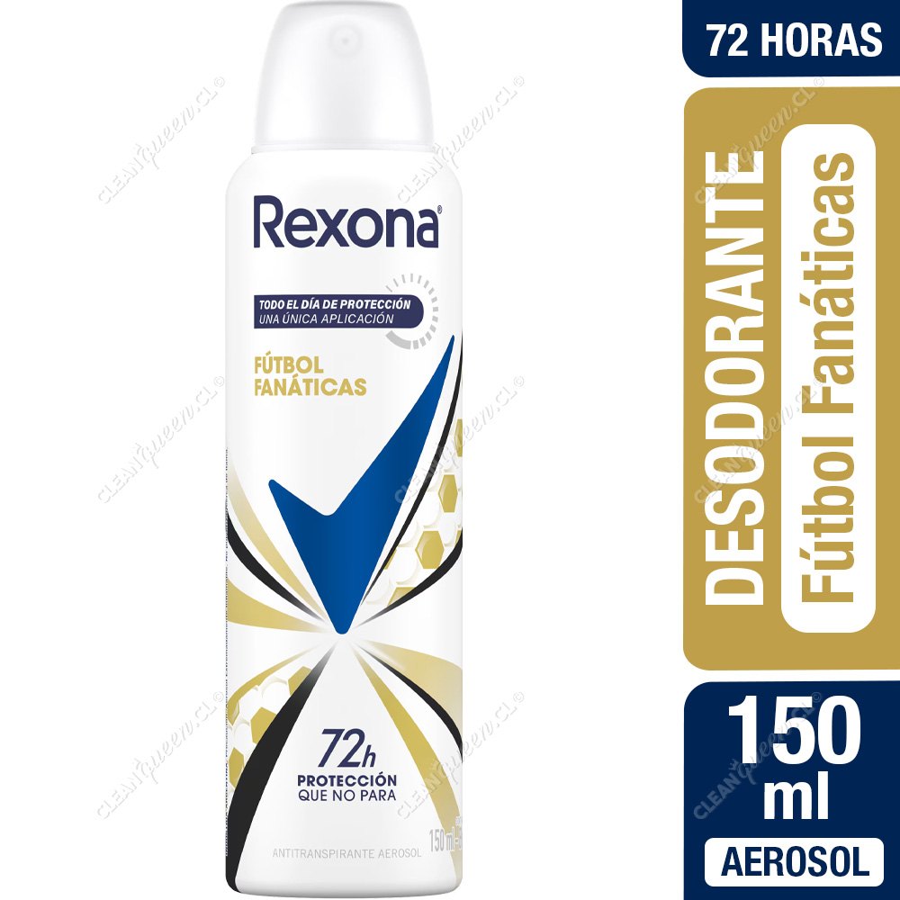 - Nuevo desodorante antitranspirante REXONA Mujer Fútbol Fanáticas en aerosol con 72 horas de protección activada por el movimiento.