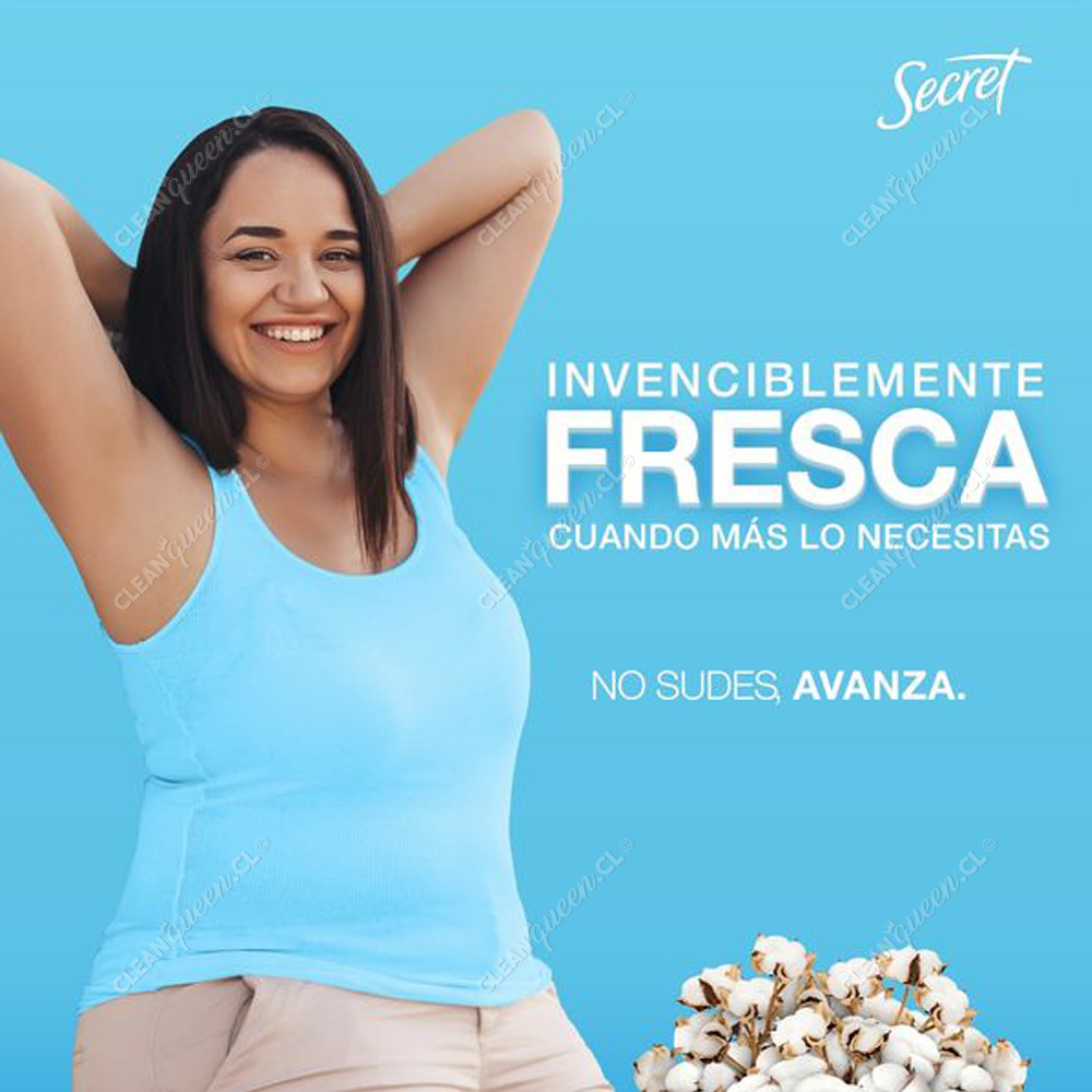 No sudes, ¡avanza! La barra Antitranspirante Secret tiene una aplicación seca que te protege contra el sudor y mal olor mientras acondiciona y protege la piel de tus axilas dejándolas secas, suaves y protegidas.