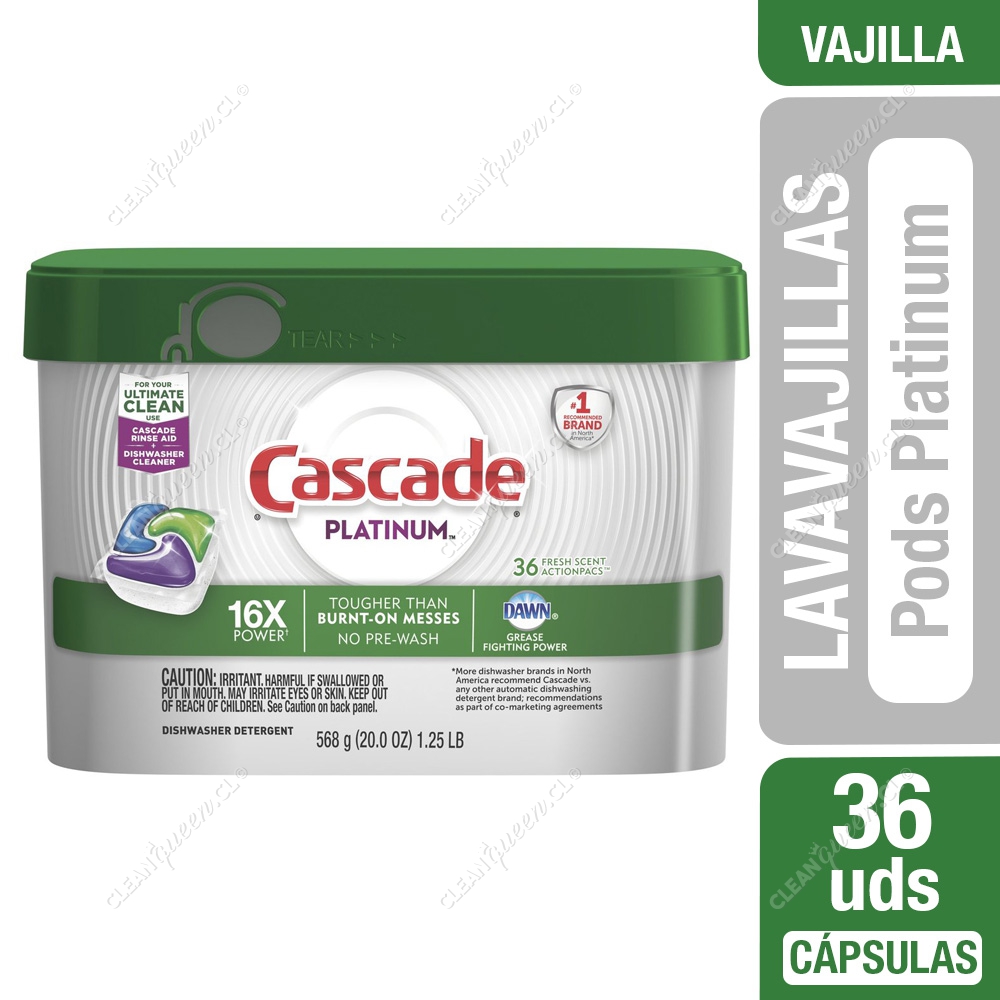 El detergente para lavavajillas Cascade® Platinum ActionPacs limpia los alimentos pegados en un solo lavado, sin necesidad de prelavado. La limpieza de loza de primera calidad elimina los alimentos pegados, mientras que la acción integrada de enjuague y el poder de Dawn® para combatir las grasas hacen que sus platos deslumbren. Además, el detergente lavavajillas Cascade Platinum está formulado para ayudar a prevenir películas de agua dura en tu lavavajillas, manteniendo su máquina fresca y limpia. Simplemente aparece en un ActionPac y revela un brillo platino.