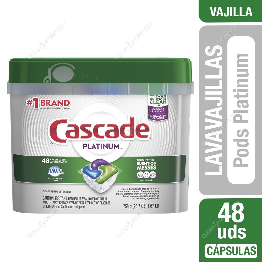 El detergente para lavavajillas Cascade® Platinum ActionPacs limpia los alimentos pegados en un solo lavado, sin necesidad de prelavado. La limpieza de loza de primera calidad elimina los alimentos pegados, mientras que la acción integrada de enjuague y el poder de Dawn® para combatir las grasas hacen que sus platos deslumbren. Además, el detergente lavavajillas Cascade Platinum está formulado para ayudar a prevenir películas de agua dura en tu lavavajillas, manteniendo su máquina fresca y limpia. Simplemente aparece en un ActionPac y revela un brillo platino.