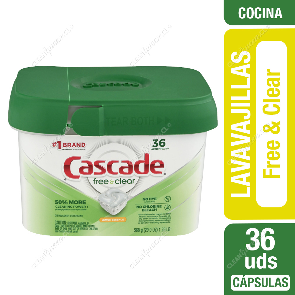 Detergente Lavavajillas Cápsulas Cascade Pods Free & Clear Limón 36 Unid