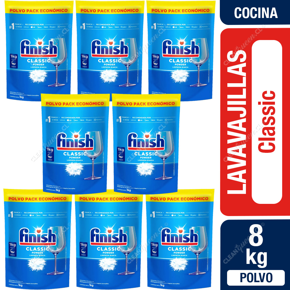 Detergente Lavavajillas Polvo Finish Pack Económico 8 x 1 Kg