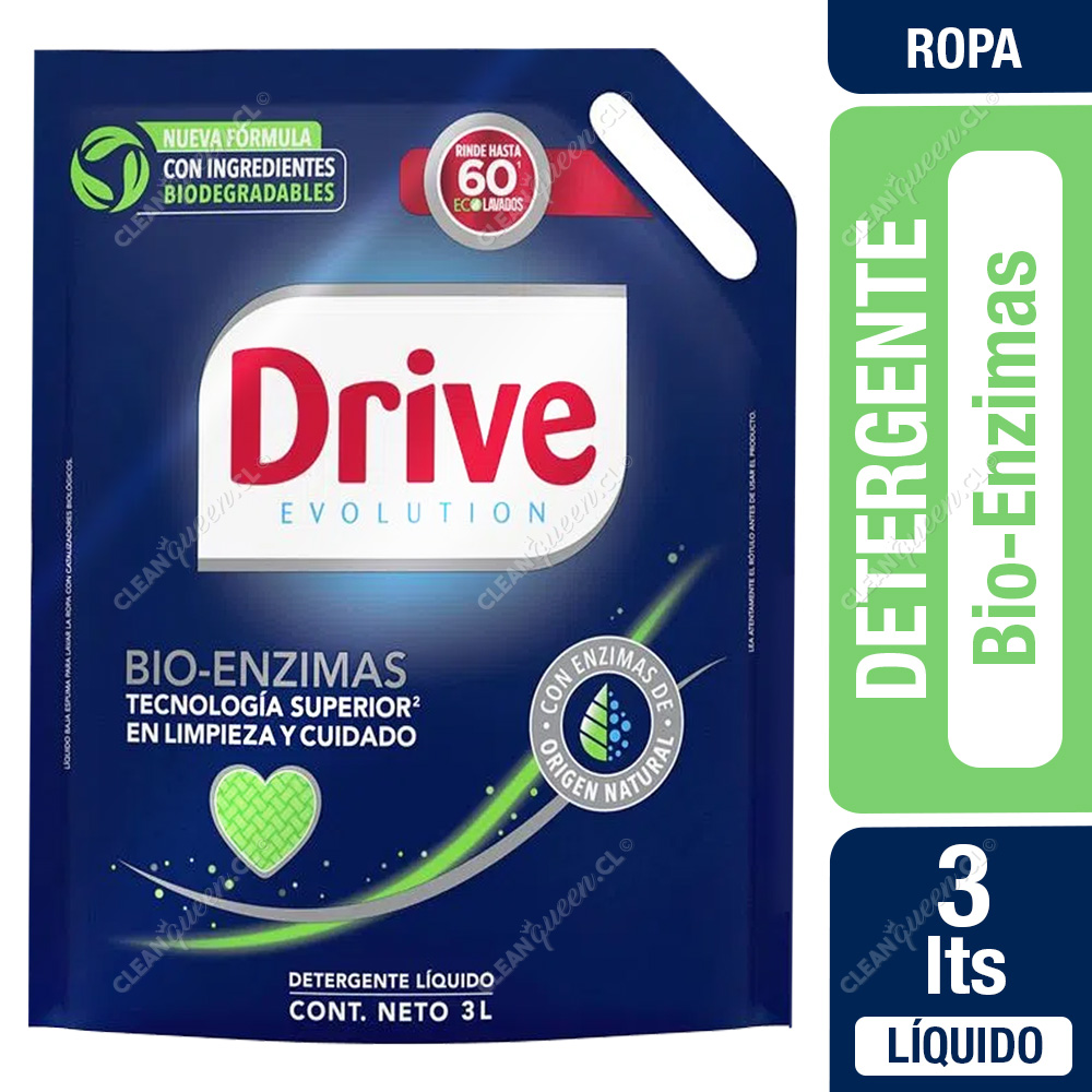 Con su nueva fórmula, Drive te permite cuidar tu ropa mientras cuidas el planeta, ya que está formulado con enzimas de origen natural y activos biodegradables.