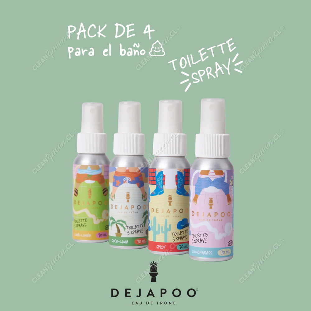 Descubre Dejapoo Toilet Spray, el eliminador de malos olores para baño más efectivo y divertido de Chile. Perfecto para el hogar, la oficina, viajes o cualquier lugar donde quieras eliminar olores del baño antes de que aparezcan. Con Dejapoo, ir al baño deja de ser incómodo y empieza a ser… ciencia, diseño y humor. Solo debes pulverizar 6+ veces sobre el agua del inodoro antes de usarlo, y su fórmula crea una barrera que neutraliza los olores desagradables al instante.