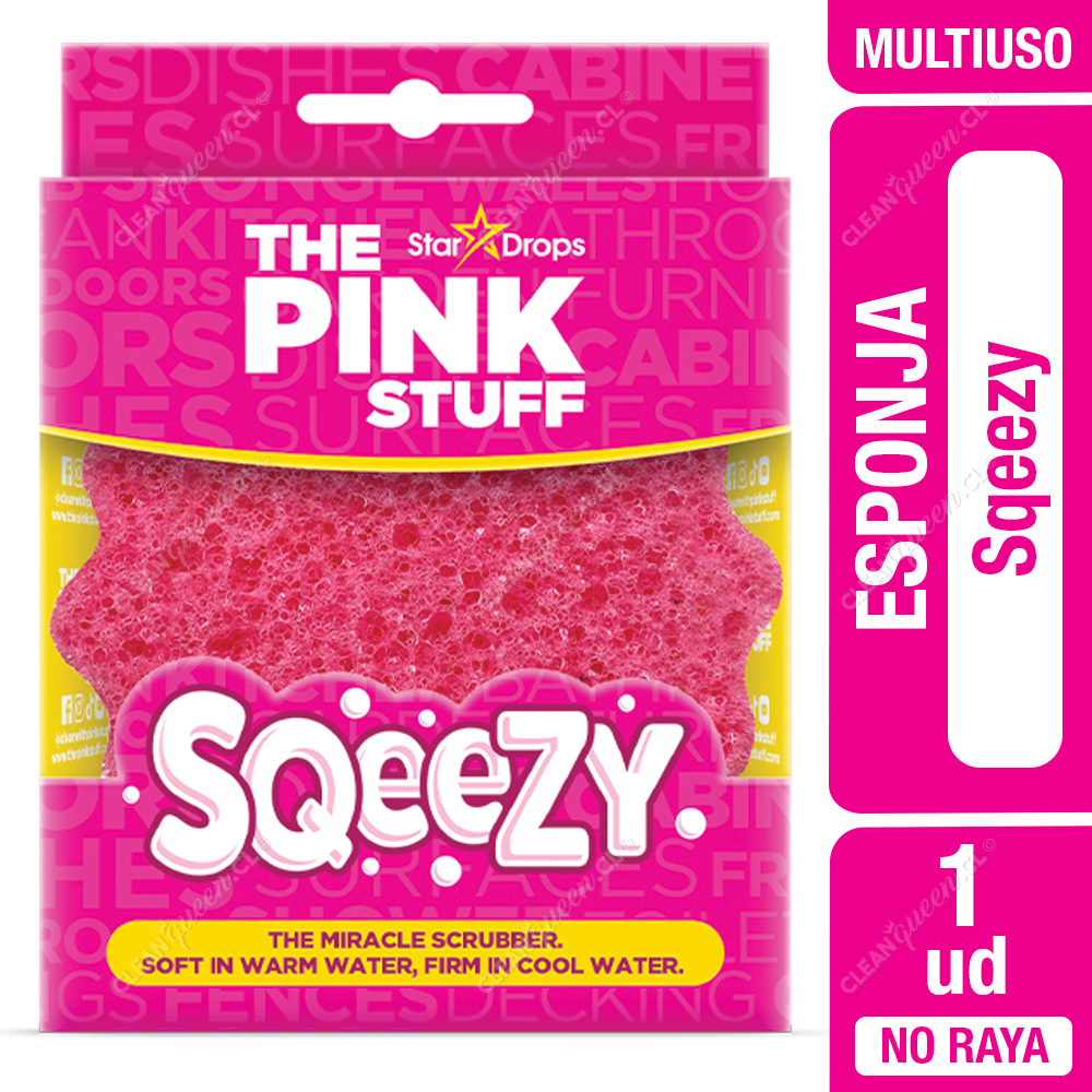 La esponja milagrosa Sqeezy The Pink stuff es ideal para usar en el hogar, la cocina, el baño e incluso en exteriores. Su material flexible lo hace suave en agua tibia y firme en agua fría para ayudar a realizar todas las tareas de limpieza. Para trabajos de limpieza más difíciles, úselo con agua fría para eliminar la suciedad y las manchas difíciles. Úselo con agua tibia para llegar a esos lugares difíciles de alcanzar, limpiar cubiertos, limpiar cristalería, fregar ollas y sartenes para eliminar la grasa fácilmente. La esponja Sqeezy no raya.