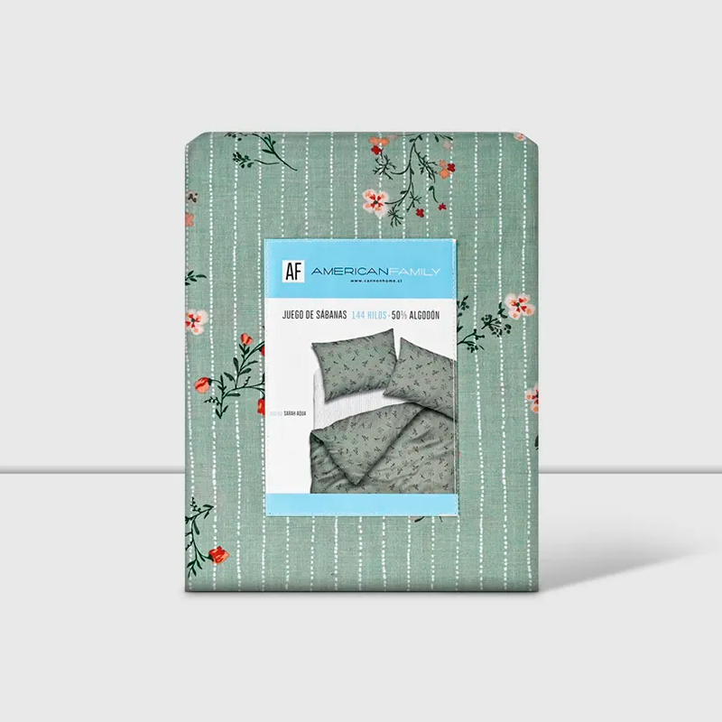 Juego de Sábanas Estampadas 144 Hilos 1.5 Plazas / Sarah Aqua – American Family by Cannon