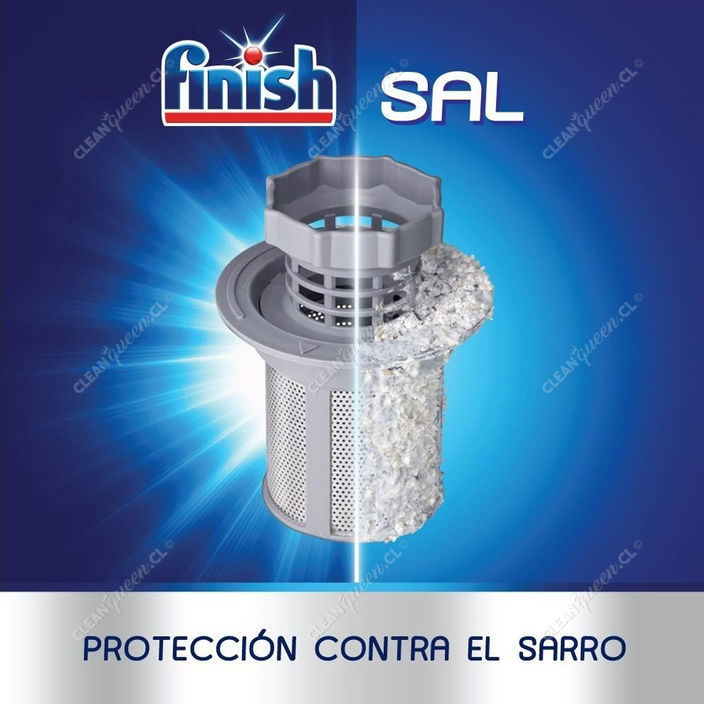 La Sal Especial Antisarro Finish tiene un 99% de pureza. Gracias a su pureza se disuelve rápidamente en el agua para trabajar junto a la unidad ablandadora de agua y así proteger mejor tu lavavajillas del sarro.