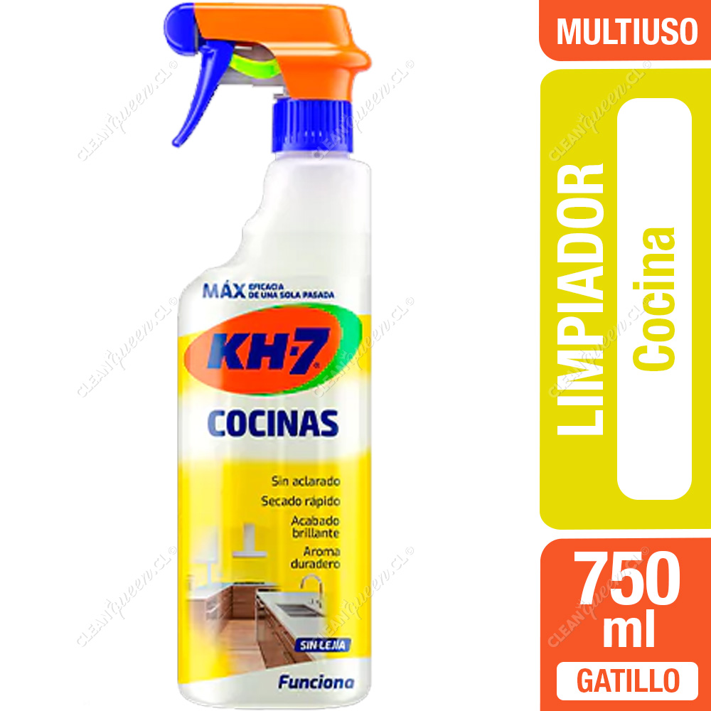 - KH7 Multiusos Cocina es el limpiador multiusos que te permitirá limpiar toda tu cocina con la mitad de tiempo y esfuerzo porque su innovadora fórmula no necesita aclarado.