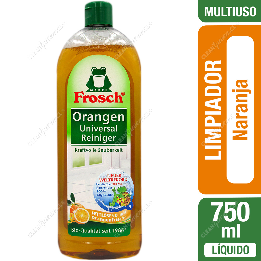 El Limpiador Universal Frosch en base a poderoso desengrasante extraído de la cascara de la naranja y jabón, es un limpiador multiuso que remueve toda la suciedad y residuos de grasa de toda clase de superficie. El aroma fresco proporciona una sensación agradable en el hogar.