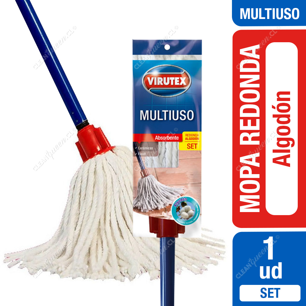 Set Mopa Redonda Algodón absorbente con hilazas de algodón aptas para todas las superficies de tu hogar.