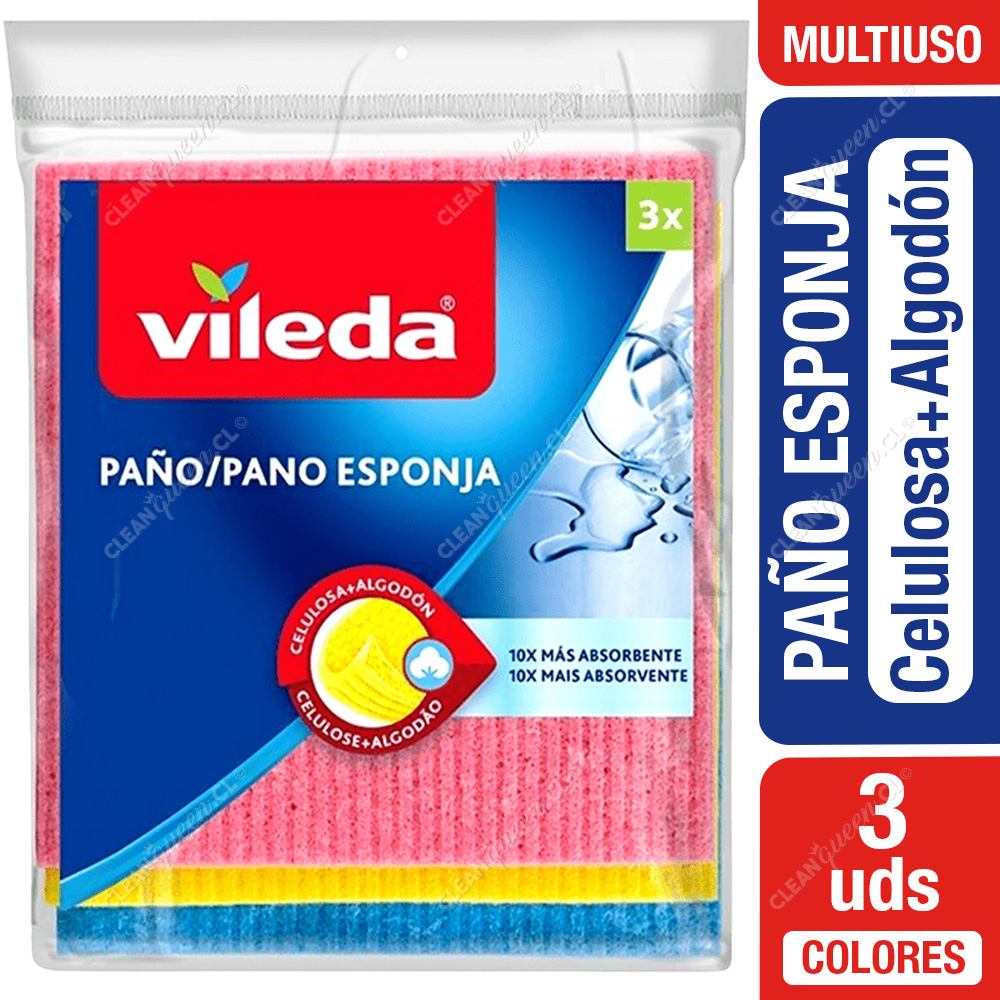 Paño Esponja de Vileda son súper absorbentes y duraderos. Limpian las superficies sin dejar rayas ni pelusas. Están hecho a partir de celulosa natural que garantiza una super absorción. Limpia y seca fácilmente superficies sin dejar rastro. Gran capacidad de absorción: absorbe hasta 10 veces su peso. Paño biodegradable. Paño de esponja 100% natural. Hecho de algodón y celulosa, este paño biodegradable proporciona la misma excepcional capacidad absorbente y limpiadora típica de los paños de Vileda.