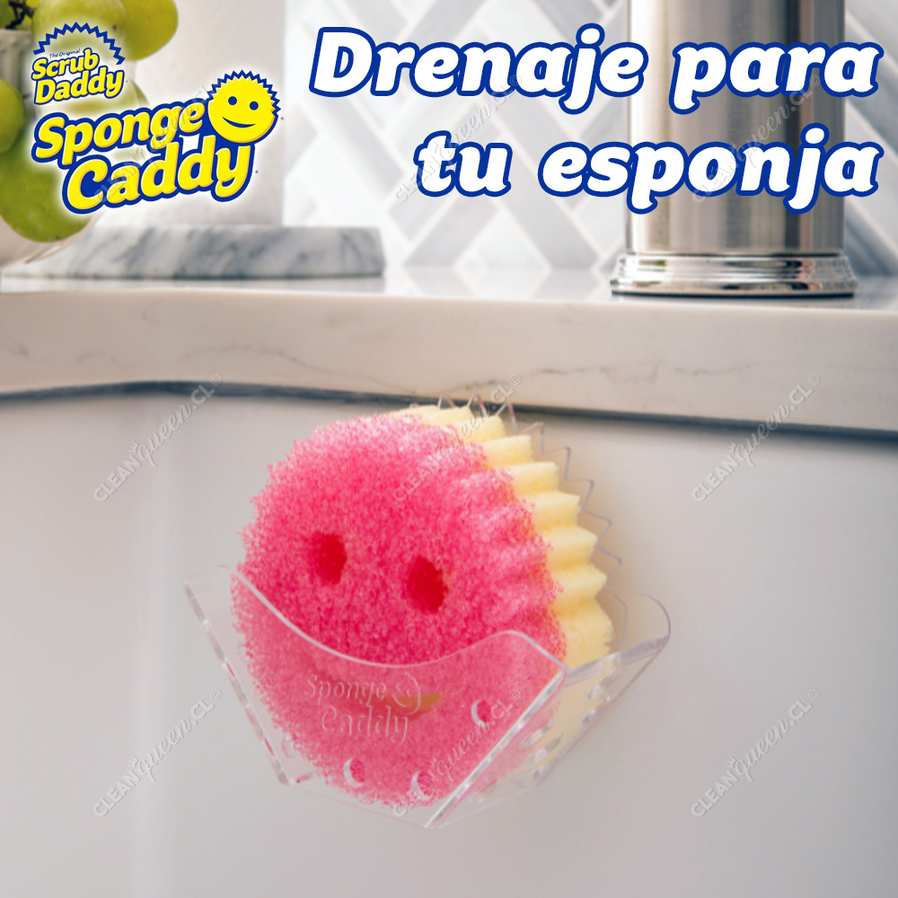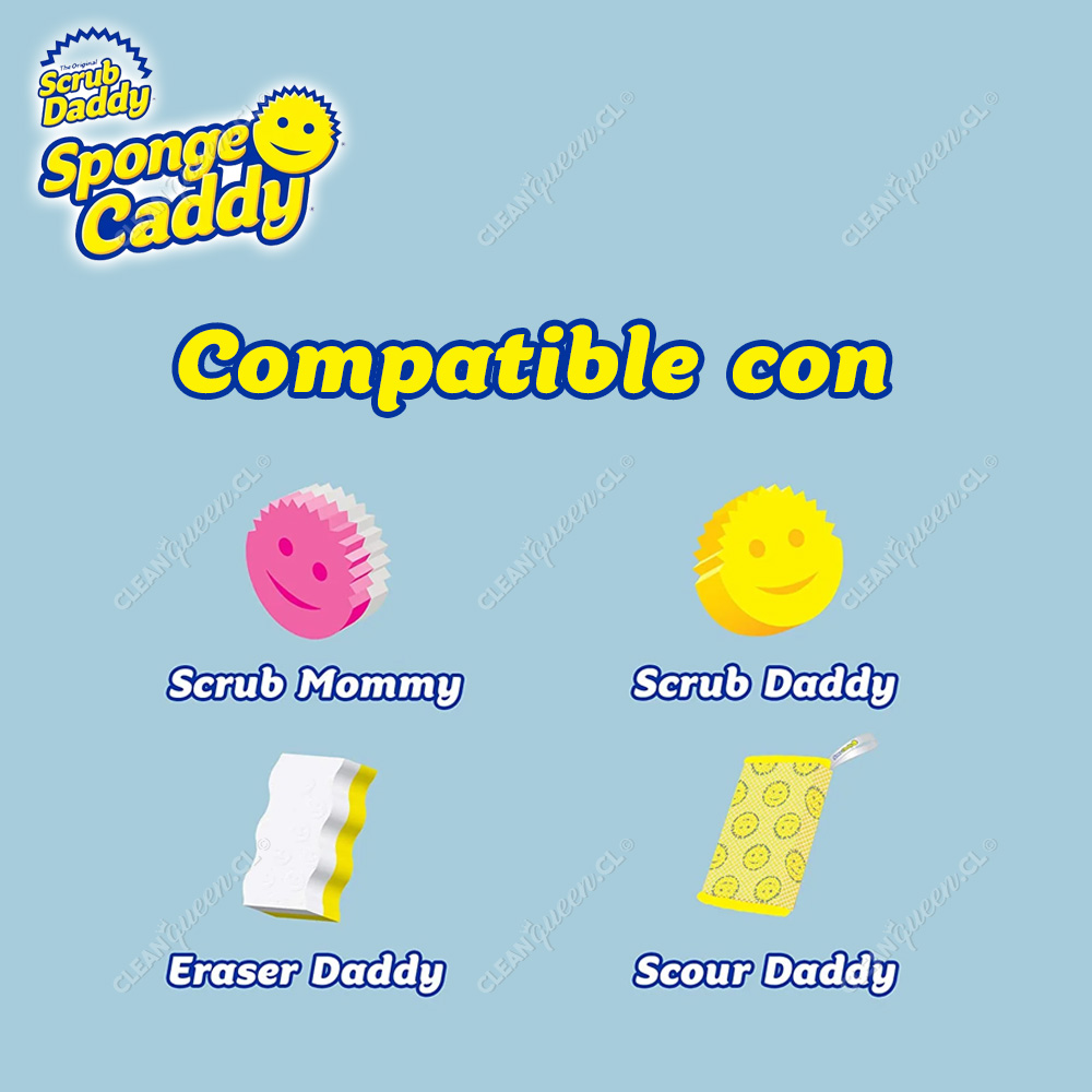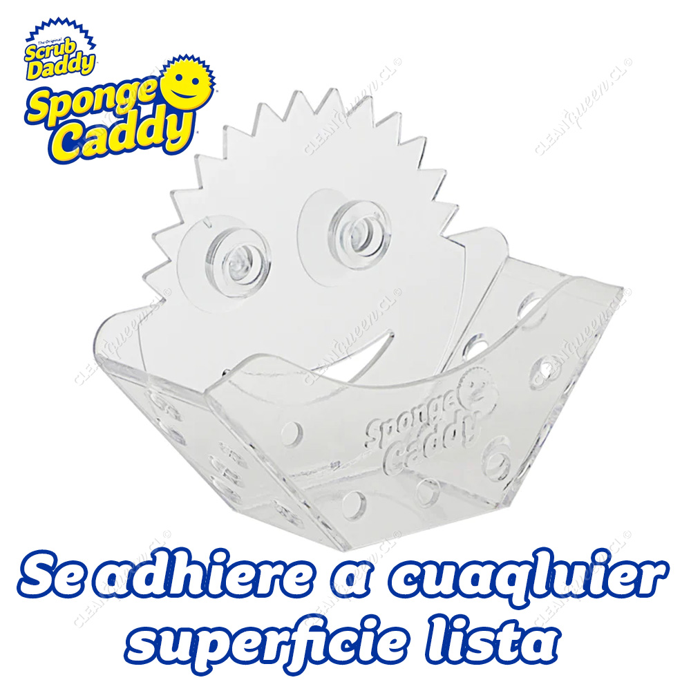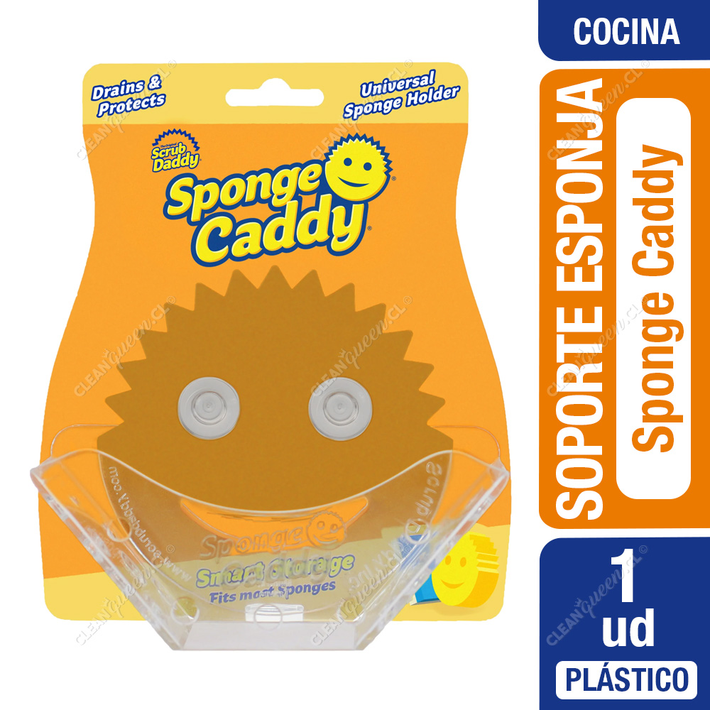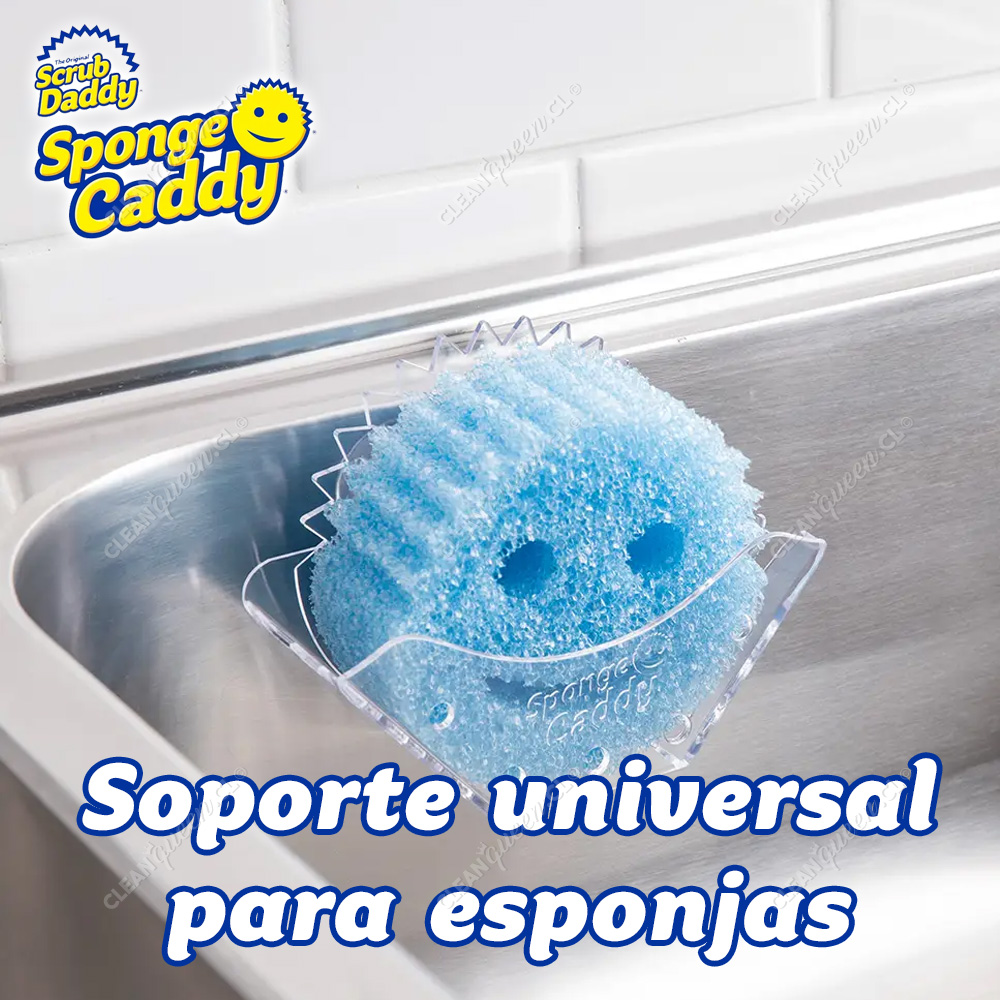 El soporte universal para esponjas Sponge Daddy de Scrub Daddy posee dos ventosas que aseguran el Sponge Caddy a la mayoría de las superficies lisas y limpias. Un diseño abierto promueve el drenaje y el secado entre usos. Este soporte universal puede acomodar una Smile Face Sponge® o esponjas de otras marcas.